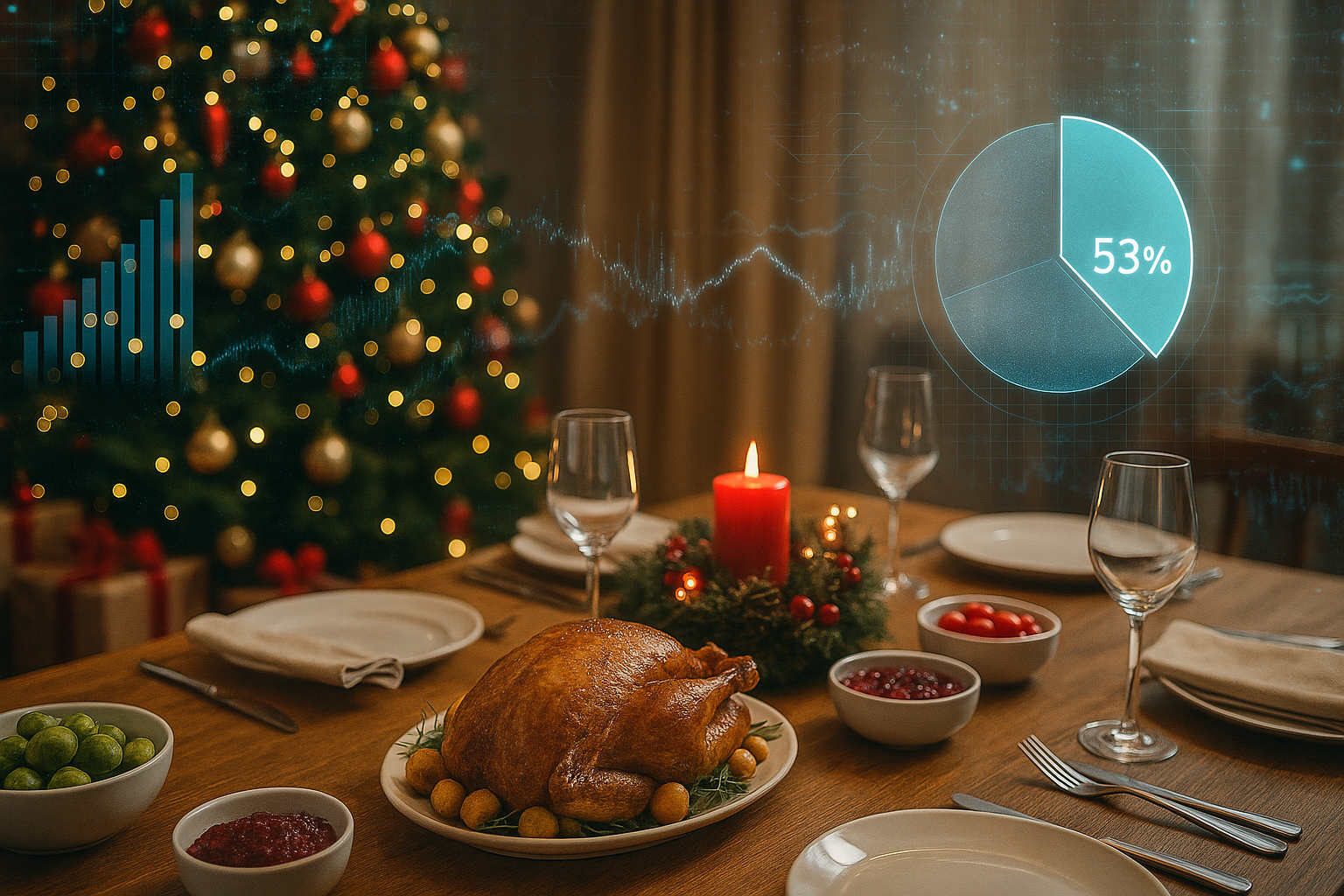 Οι φετινές γιορτές αναμένεται να γιορταστούν κυρίως στο σπίτι για περισσότερους από τους μισούς Έλληνες, σύμφωνα με τα πρώτα στοιχεία που προκύπτουν από έρευνα καταναλωτικών συνηθειών. Συγκεκριμένα, το 53% των Ελλήνων δηλώνει ότι θα επιλέξει να περάσει τις γιορτές στο οικιακό περιβάλλον, γεγονός που αντανακλά τις οικονομικές και κοινωνικές συνθήκες που διαμορφώνονται εν μέσω αβεβαιοτήτων.