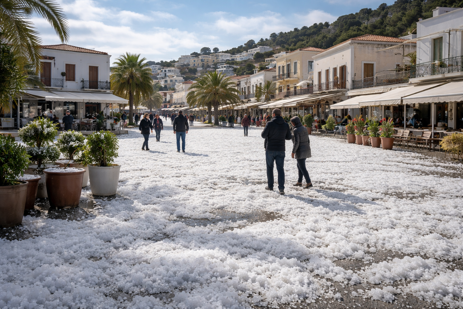 • Η χαλαζόπτωση δημιούργησε ένα λευκό τοπίο στην περιοχή, προσδίδοντας ξεχωριστό χαρακτήρα στον εορτασμό των Χριστουγέννων.