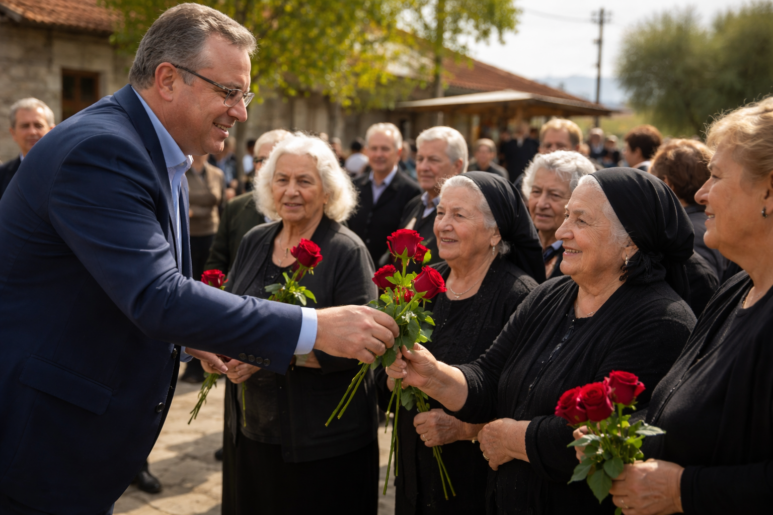 • Κατά τη διάρκεια της εκδήλωσης, ο Φάμελλος προσέφερε κόκκινα τριαντάφυλλα σε γυναίκες της τοπικής κοινότητας.